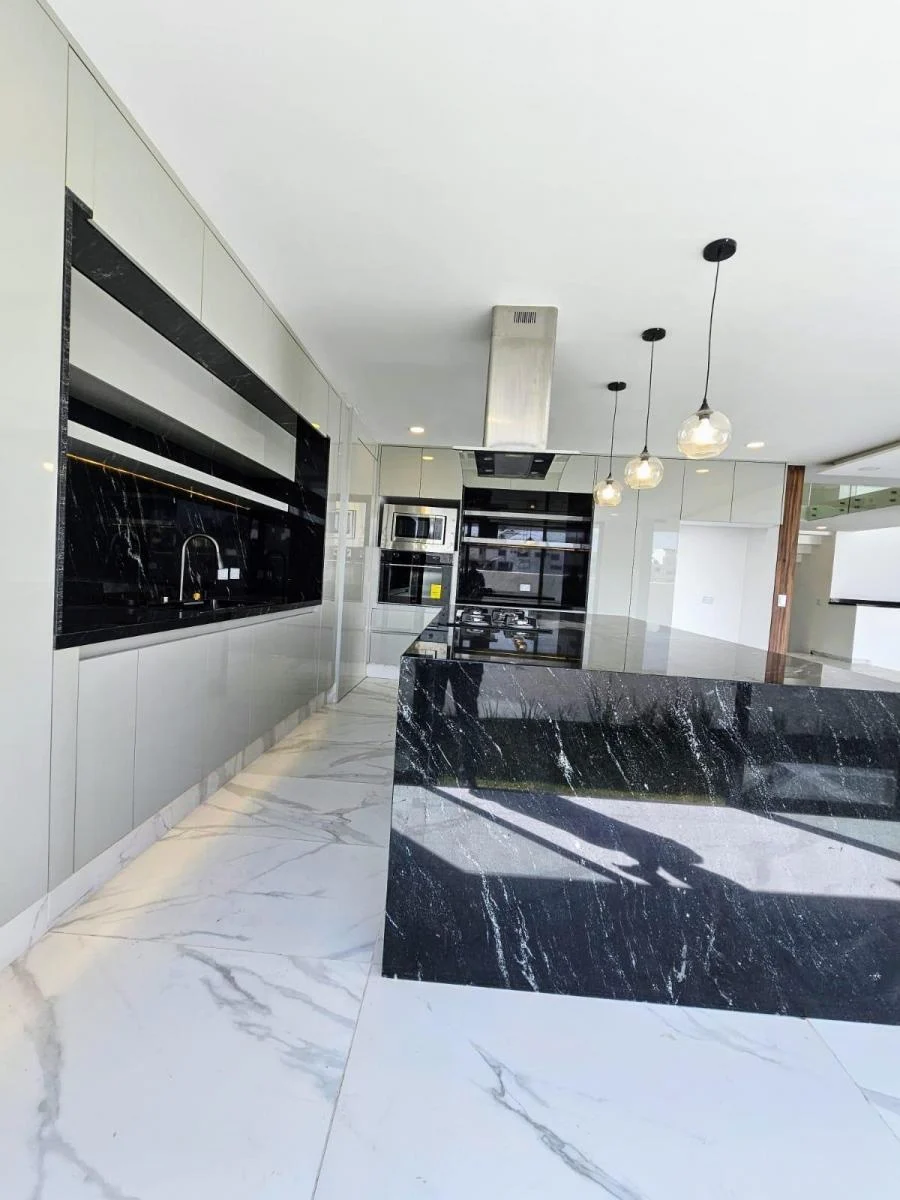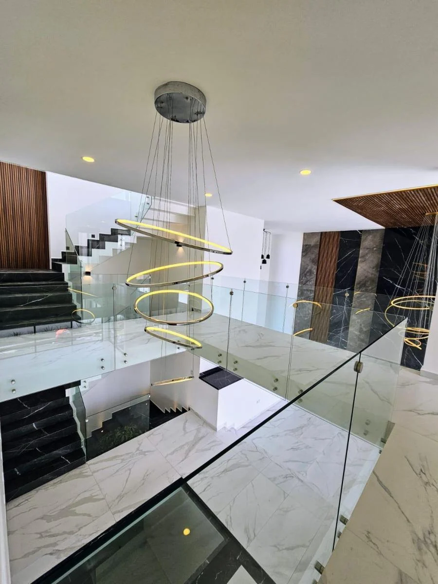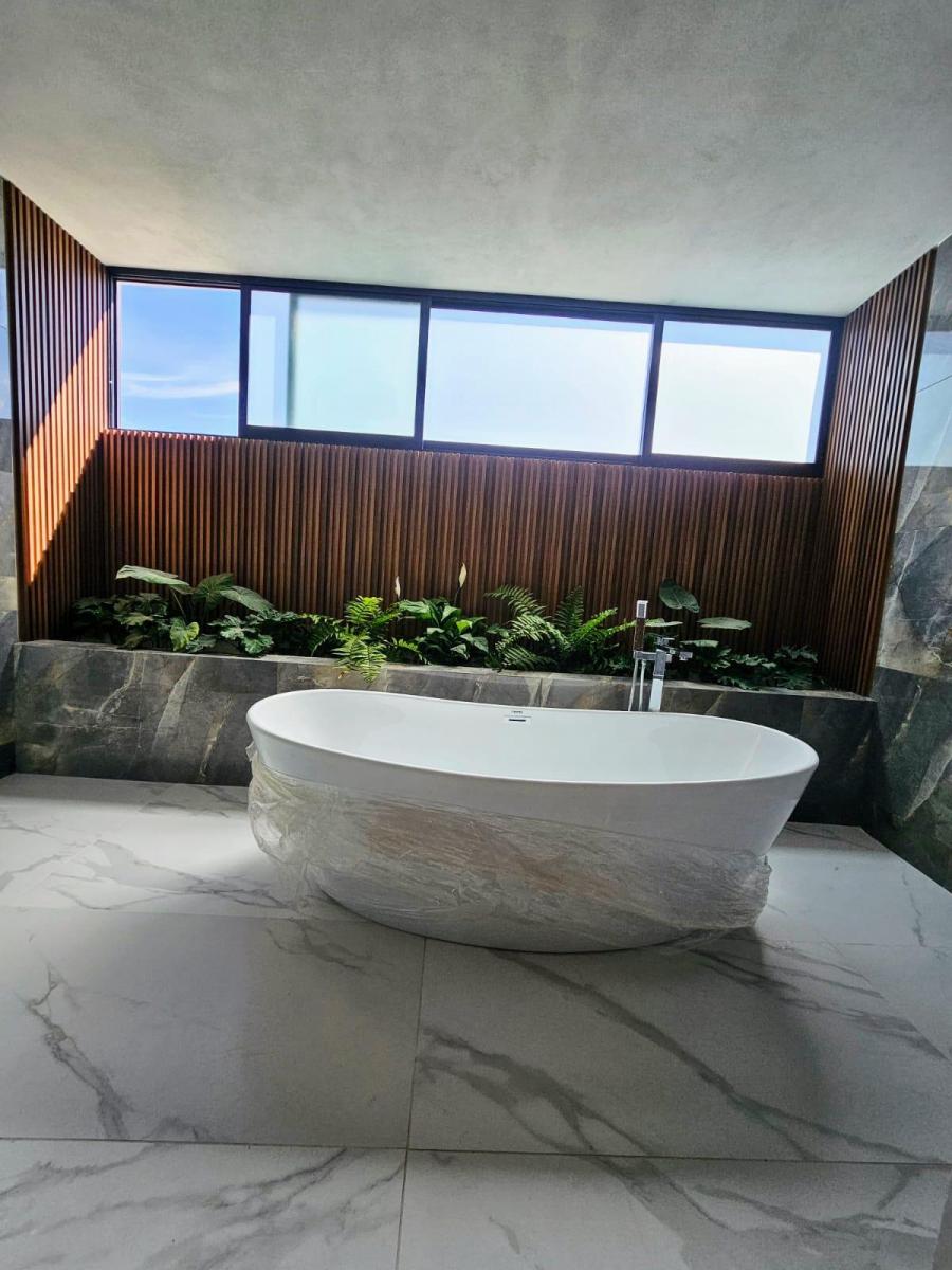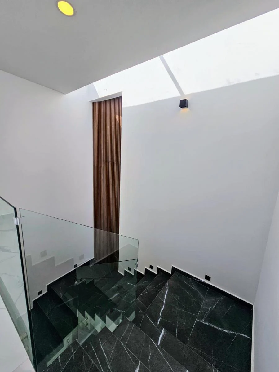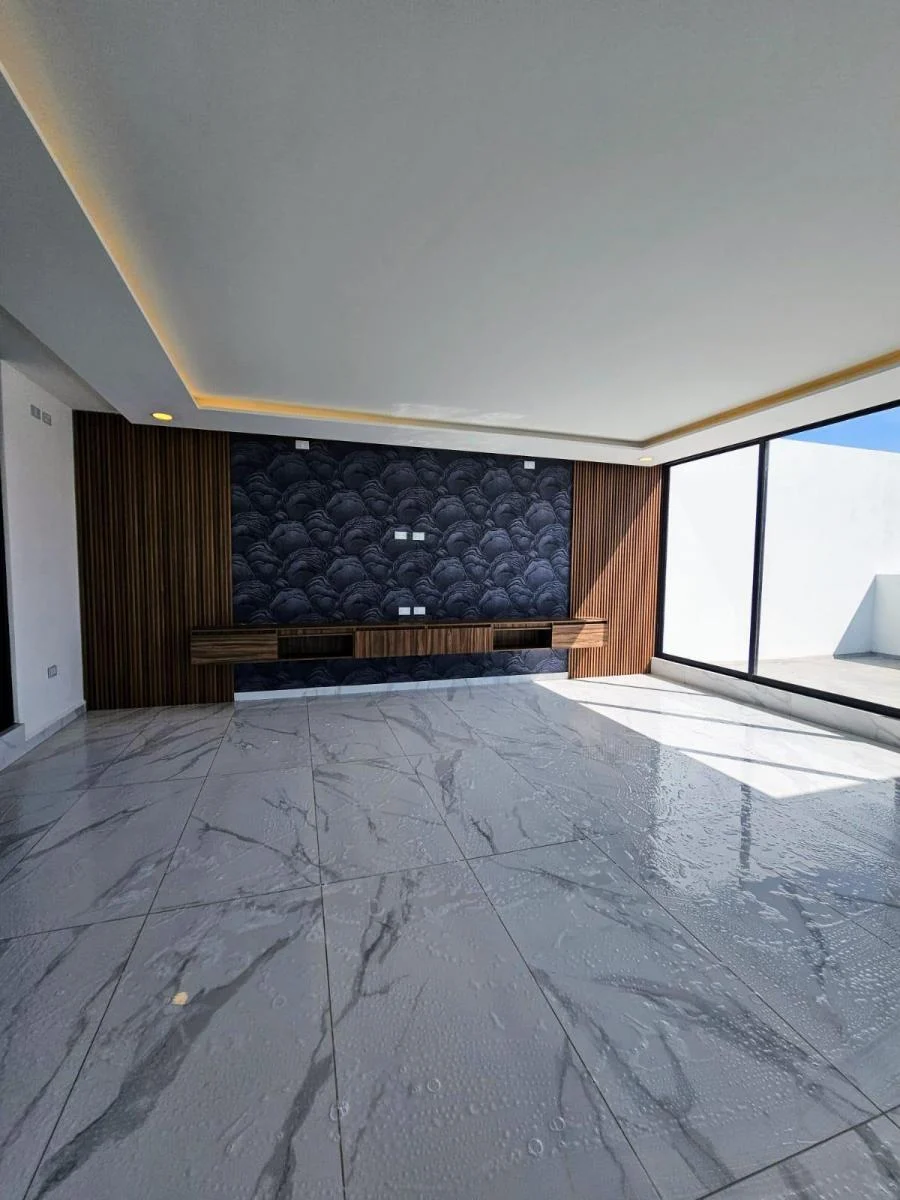 1er Nivel : 3 recámaras cada una con baño , recámara principal com vestidor amplio con isla , cuarto de pánico, baño con tina.